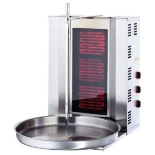 Дана модель має три зони нагріву, які мають незалежне управління. Механічне обертання шампуру. ТЕНи закриті за керамічним склом, що захищає їх від попадання жиру і сприяє легкому догляду. Корпус апарата виготовлений із нержавіючої сталі.