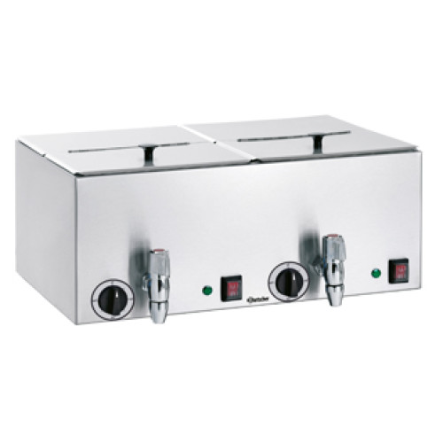 Сосисковарка Bartscher A120.456 - это аппарат для подогрева сосисок. Данный аппарат имеет две раздельные ванны с кранами для слива воды. Каждой ванна оборудована отдельным термостатом, что позволяет устанавливать рабочую температуру от 30 до 90С и контрольной лампочкой.