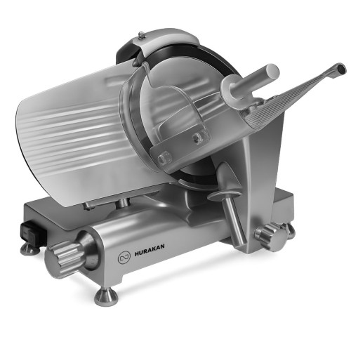 Слайсер оснащён лезвием диаметром 300 мм, корпусом из алюминия и встроенным устройством для заточки. Обеспечивает толщину нарезки от 0,2 до 16 мм.