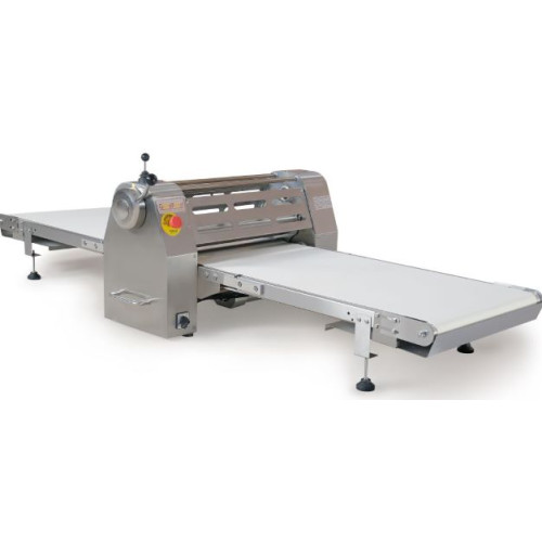 Товщина тіста встановлюється вручну в діапазоні від 1 до 40 мм. Тісто поміщають на транспортувальну стрічку, без необхідності його підтримування. Максимальна вага тістової заготовки 5 кг. Автоматичне обертання стрічкового конвейєра. Розмір конвейєрної стрічки 2160х500 мм.