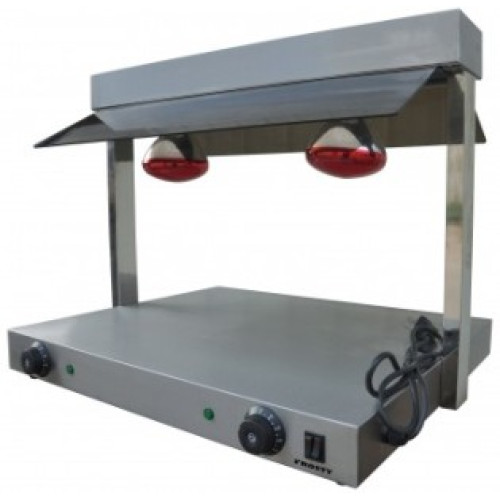 Зона нагрева из нержавеющей стали, размером 680*530 мм, с раздельной регулировкой температуры. Вверху установлены две инфракрасные тепловые лампы мощностью по 250 Вт. Температурный режим от +30 до +85 С. Корпус выполнен из нержавеющей стали.