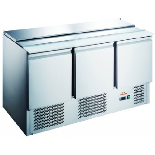 Стол холодильный Frosty S903 на три двери используют для хранения охлажденных продуктов в небольших кафе, ресторанах, пиццериях. Внутренний объем 386 л. Температурный режим от +2 до +8С. Оптимальная работа при температуре окружающей среды до +33С. Охлаждение - статическое с обдувом.