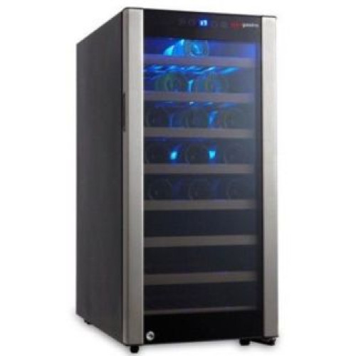 Одна климатическая зона. Диапазон температур от +5 до +18 С. Установленный температурный режим отображается на дисплее. В комплекте семь деревянных полок. Вместимость 32 бутылки по 0,75 л. Бутылки хранить в горизонтальном положении. Равномерное распределение потоков холодного воздуха по всей камере. Внутреннее освещение шкафа улучшает обзор содержимого.