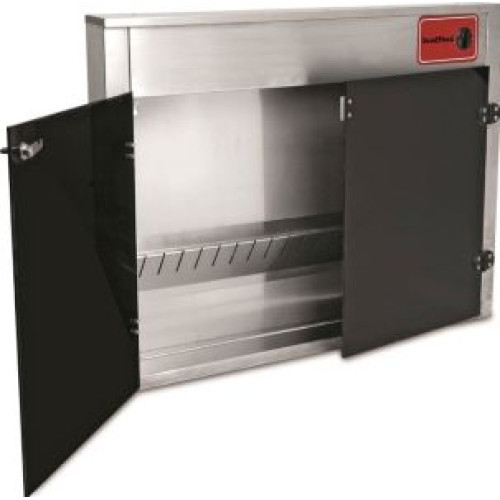 Дезинфекцию обеспечивает лампа, излучающая ультрафиолетовые лучи. Встроенный таймер на 120 секунд. Корпус выполнен из нержавеющей стали, дверцы из поликарбоната черного цвета. Тип - настенный.