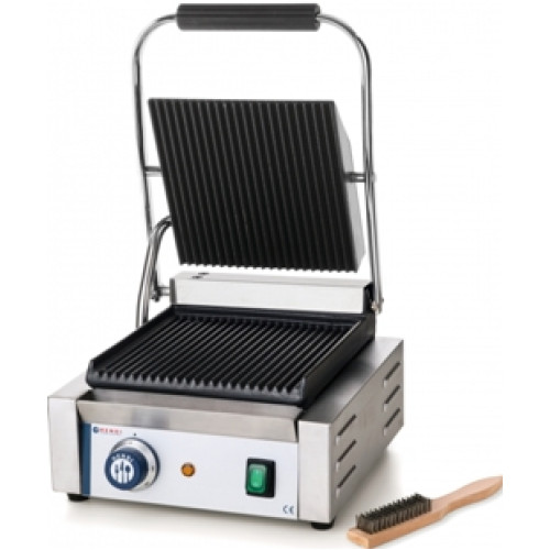 Контактный (прижимной) HENDI 263501 используют для обжаривания и запекания мяса, рыбы, сыра, овощей. Даная модель имеет 1 пару (верх + низ) рабочих рифлёных поверхностей размером 220х230 мм, которые выполнены из чугуна. Корпус изготовлен из н/ж стали.