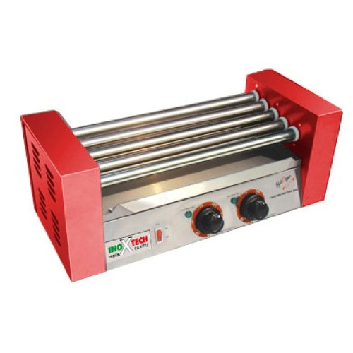 Гриль роликовый Inoxtech HDG 005 на пять роликов используют для обжаривания сосисок и сарделек в местах фаст-фуда. Процесс приготовления занимает две минуты.