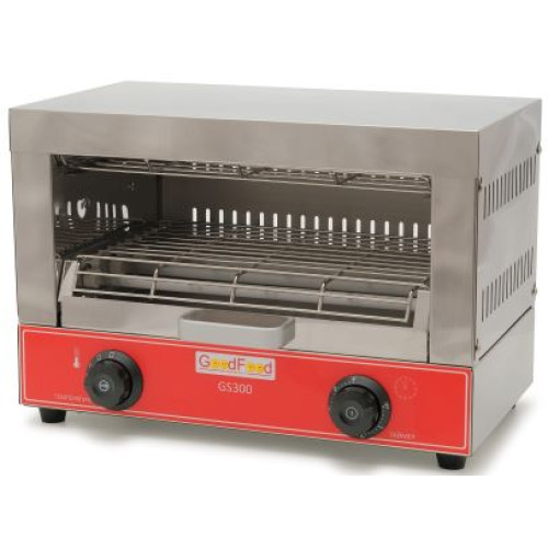 Гриль саламандра електричний GoodFood GS300 використовують для запікання, підігріву та підтримки готових страв теплими в закладах громадського харчування, фаст фуді, автозаправках.