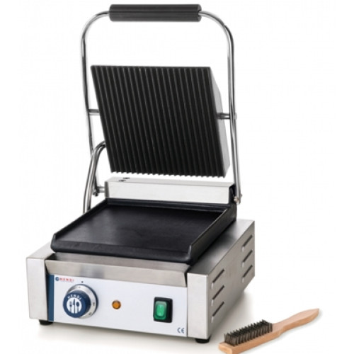 Контактный (прижимной) HENDI 263600 используют для обжаривания и запекания мяса, рыбы, сыра, овощей. Даная модель имеет верхнюю ребристую и нижнюю гладкую поверхность 220х230 мм, которые выполнены из чугуна. Корпус изготовлен из н/ж стали.