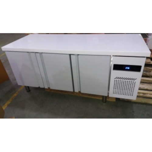 Данная модель на три двери, на каждую дверь одна полка-решетка под гастроемкость GN1/1. Температурный режим от -2 до +10 С устанавливается электронным термостатом и отображается на дисплее. Принудительный обдув. Автоматическое размораживание и испарение конденсата. Климатический класс SN, N, ST. Выполнен из нержавеющей стали.