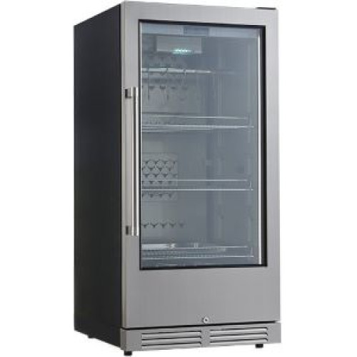 Панель управління сенсорна. LED дисплей та світлодіодні індикатори. Вертикальна LED підсвітка з 2-х сторін. UV-стерилізація. Вугільний фільтр. Циркуляційне охолодження (4 вентилятори). Всередині корпус виготовлений із нержавіючої сталі, зовні - фарбований метал, дверцята - трьох шарове Low скло в нержавіючій рамі з сріблястим покриттям, оснащені замком, ручка алюмінієва.