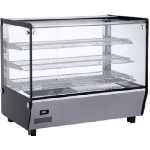 Три уровня для выкладки продукции. Две полки регулируются по высоте. Полки решетки хромированные. Внутренний объем 200 л. Вверху витрины LED подсветка. Температурный режим от 0 до +12 С устанавливается цифровым термостатом. Охлаждение динамическое. Автоматическая оттайка делает витрину удобной в эксплуатации. Корпус частично выполнен из нержавеющей стали и пластика. Цвет корпуса черный.