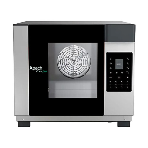 Конвекционная печь с инжекторным пароувлажнением, оснащена турбинным вентилятором с реверсом и направляющими под гастроемкости GN2/3 и дека 460х340 мм.