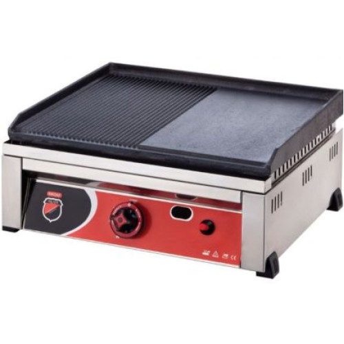 Корпус виготовлений із нержавіючої сталі, робоча поверхня чавунна. Для залишків жиру передбачений піддон. Підключається до балонного газу.