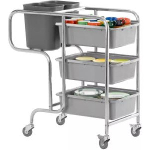 Дана модель має 3 рівні і включає в комплект поставки 3 пластикові контейнера для тарілок, чашок, склянок та 2 контейнера для столових приборів. Контейнери знімні. Оснащений візок 4 поворотними колесами, 2 з яких мають гальма. Поставляється в розібраному вигляді.