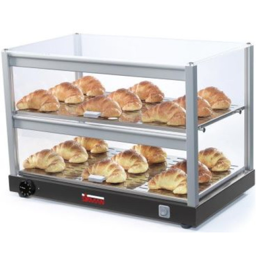 Двоє дверцят з алюмінієвими ручками, відкриваються вертикально. Температурний режим встановлюється і автоматично підтримується регулятором. Максимальна темература +70 С. Для підтримки вологості передбачено резервуар для води. Виконана вітрина з прозорого оргскла і анодованого алюмнію (колони).