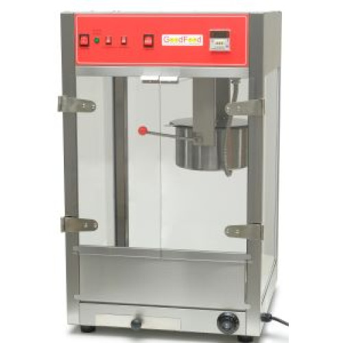 Апарат для приготування попкорну GoodFood PCM12 SILVERCORN відноситься до преміального сегменту. Камера оснащена підсвіткою та витяжним вентилятором. Корпус виготовлений із нержавіючої сталі, дверцята з прозорого полікарбонату, склопакет з трьох сторін. Знизу передбачено підігрів дна камери.