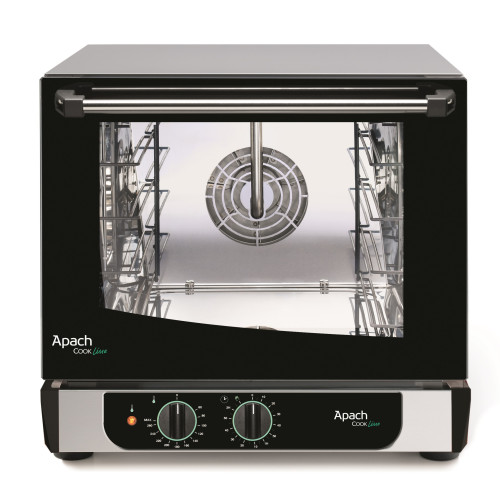Конвекционная печь без пароувлажнения, оснащена 1/2 турбинным вентилятором без реверса и направляющими под гастроемкости 450х340 мм.