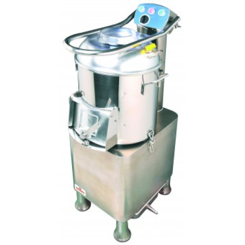 Принцип работы картофелечистки следующий: с помощью вращающегося абразивного диска кожура снимается с корнеплодов. По сливному шлангу мезга попадает через отверстия в канализацию. Возможно удаление мезги через фильтр. Степень очистки определяют визуально или по таймеру. При необходимости вручную вырезают черные пятна, которые не очистила картофелечистка.