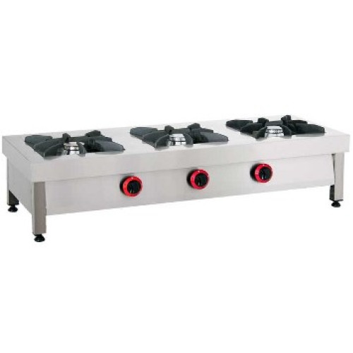 Плита газовая ПГ-3Н-Б-СЕ на три конфорки под баллонный газ предназначена для заведений общественного питания. Конфорки чугунные, размером 335*335 мм обеспечивают равномерное прогревание посуды и экономию газа. Между конфорками увеличенное расстояние, чтобы использовать посуду с большим диаметром. Решетки на конфорках из прочного чугуна, что выдерживает посуду большого объема. Тепловая мощность одной горелки 7,5 Квт. Расход газа 1,41 м.куб/час.
