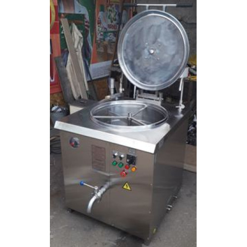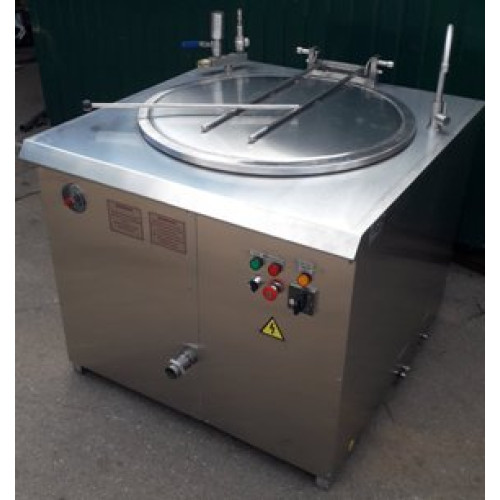 Объем 160 л. Нагрев косвенный, через пароводяную рубашку, что исключает пригорание продуктов. До 100 С вода разогревается за 50 минут. Давление пара в пароводяной рубашке регулирует предохранительная система на уровне 0,45 Бар.