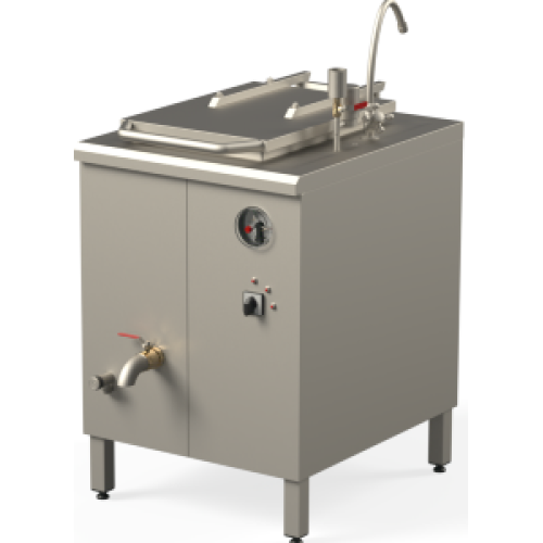 Объем 60 л. Нагрев косвенный, через пароводяную рубашку, что исключает пригорание продуктов. До 100С вода разогревается за 35 минут. Давление пара в пароводяной рубашке регулирует предохранительная система на уровне 0,45 Бар.
