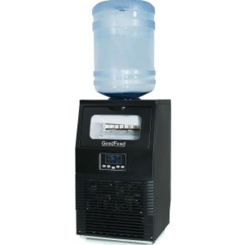 Подача води через бутель (в комплект не входить). Керування: LED дисплей з мікропроцесором. Внутрішня підсвітка. Дана модель без підключення до каналізації і водопостачання. Корпус пластиковий, чорного кольору. Охолодження компресору повітряне. Холодоагент R290. У коплекті совок для льоду, зливний шланг.