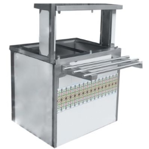 Изготовлен из нержавеющей стали, в комплекте направляющие для разносов, одна полка. Под верхней полкой предусмотрена подсветка. Высота регулируется. Устанавливать можно в составе линии раздачи АРМ-ЭКО или, как отдельно стоящий элемент. При необходимости можно доукомплектовать фронтальным стеклом и дополнительной полкой.