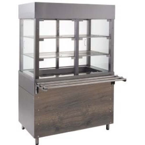 Корпус витрины и направляющие выполнены из нержавеющей стали. Направляющие съемные. Витрина холодильная ВХК-1500 Д может использоваться в составе линии раздачи Классик Декор или, как отдельный элемент.