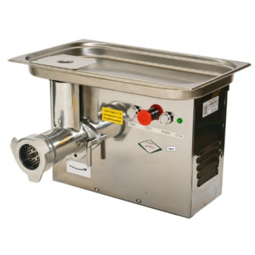 На данной мясорубке установлен червячный редуктор, что гарантирует бесшумную и равномерную работу оборудования, а также увеличивает продолжительность срока эксплуатации. Встроенная функция "Реверс" позволяет не разбирая мясорубку освободить шнек от намотанных жил.