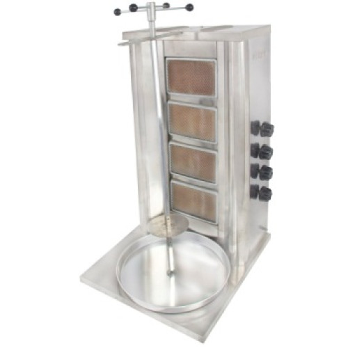 Аппарат для шаурмы газовый Pimak M076 на 4 горелки имеет загрузку 50-60 кг мяса. Скорость прожаривания мяса регулируется толщиной мясного цилиндра, регулировкой кранов газовых горелок, а также расстоянием между газовыми горелками и мясным цилиндром.