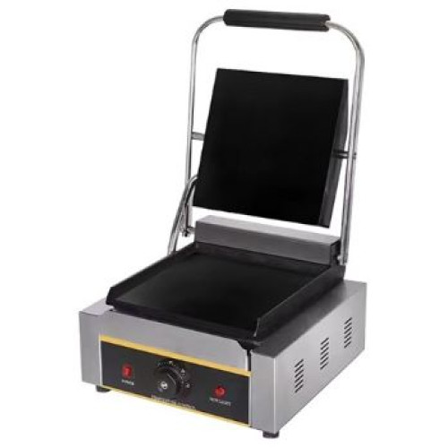 Верхня і нижня робочі поверхні гладкі, виготовлені із чавуну. Корпус гриля із нержавіючої сталі. Розмір нижньої частини 235х235 мм, розмір верхньої частини 215х215 мм. Верхня частина фіксується в необхідному положенні за допомогою пружини. Температурний режим від +50 до +300 С підтримується термостатом. Для збіру жиру передбачено знімний лоток (жирозбірник).