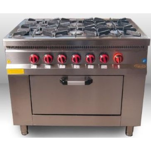 Плита газова Pimak 70S-М015-6F з духовкою призначена для професійного використання в кафе, ресторанах, фаст фуді. Дана модель на 6 конфорок. Розмір накладки на конфорки 300х300 мм. Накладки чавунні.