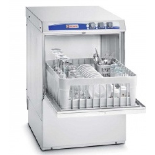 В комплекте корзины 350х350 мм. Цикл мойки 120 сек. Температура воды +55 С...+60 С. Расход воды при ополаскивании 2,5 л. Для удобного техобслуживания машины, электрические части расположены с фронтальной стороны.