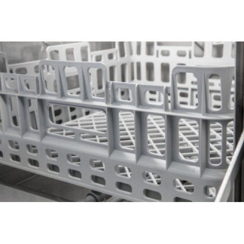 Поставляется машина в комплекте с дозаторами моющего и ополаскивающего средств, кассетами для тарелок, стаканов и столовых приборов.