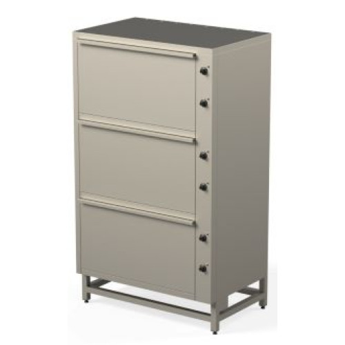 Данная модель на три секции. Внутренний размер шкафа 690*570*370 мм. Предусмотрено три уровня для противней. В комплекте в каждой секции по два противня размером 660*530*40 мм. Также можно использовать гастроемкость GN1/1.