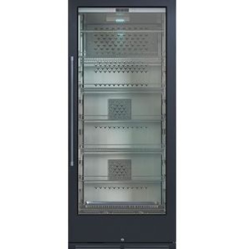 Шафа для дозрівання м'яса Frosty H730T об'ємом 730 л дозволяє завантажити до 140 кг м'яса. В комплекті шість поличок з бортиками із нержавіючої сталі розміром 680х480 мм. Полички регулюються по висоті. Температурний режим регулюється від +1 до +22 С, вологість регулюється від 60 до 85% RH. Сигналізація з попередженням зумером.