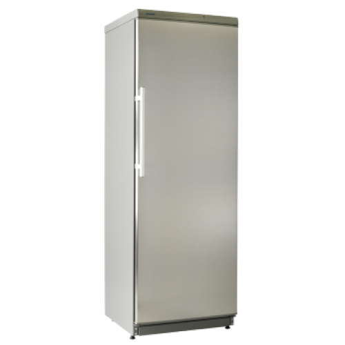 Внутренний размер камеры 502*453*1518 мм, полезный объем 350 л. Внутри шкафа шесть решетчатых полок размером 522*361 мм. Допустимая нагрузка на полку 50 кг. Температурный режим от -2 до +8 С при температуре воздуха от +16 до +30 С. Механический термостат. Охлаждение динамическое с вентилятором обеспечит равномерное распределение охлажденного воздуха внутри холодильника. Автоматическое размораживание за счет испарения конденсата.