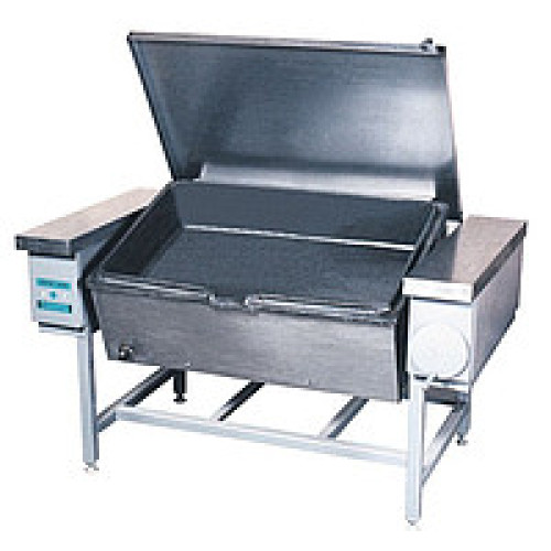 Сковорода СЭМ-0,5 оборудована механизмом подъема и опускания чаши, предусмотрена фиксация угла наклона в разных положениях. Температура регулируется от 50 до 300С. До рабочей температуры 200С нагревается за 25 минут. Размер рабочей поверхности 920х520 мм.