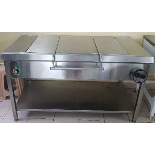 Чаша чугунная опрокидывающаяся объемом 80 л и внутренним размером 965*550*160 мм. Максимальный угол наклона чаши 90 градусов. Диапазон рабочих температур от +50 до +300 С. Нагрев ТЭНами. Установлено 11 ТЭнов мощностью по 0,8 кВт каждый. Выход на рабочую температура за 35 минут.