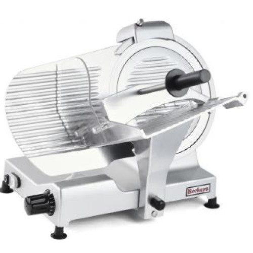 Слайсер BECKERS BKL 220 PRO використовують для нарізки ковбасних виробів, сирів твердих сортів, копченостей на скибки встановленої товщини. Регулювання товщини нарізки від 0 до 15 мм. Розмір нарізки 145х200 мм. Вбудований заточувальний пристрій.