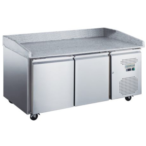 Стіл холодильний для піци GoodFood GF-PZ2600TN-HC використовують піцерії, кафе, ресторани для приготування піци. Робоча поверхня гранітна ідеально підійде для розкатки тіста для піци. Висота гранітного борту 150 мм. На задній борт при потребі ставиться вітрина холодильна для топінгу.