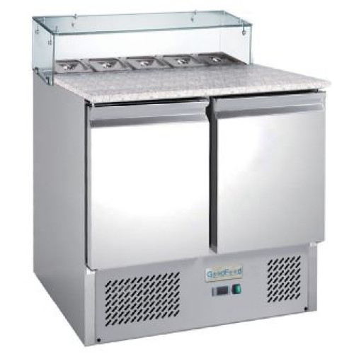 Стіл холодильний саладета GoodFood GF-PS900GT-H6C призначений для короткочасного зберігання охолоджених продуктів. Робоча поверхня гранітна ідеально підійде для розкатки тіста для піци. Глибина стільниці 465 мм. Об'єм 240 л.