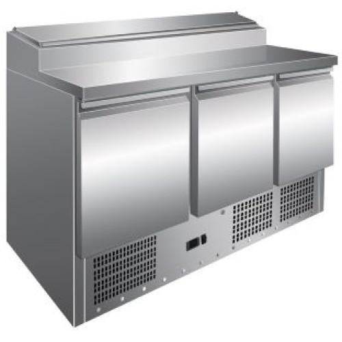 Охолоджувальний відсік під гастроємності використовують для викладки інгредієнтів для піци, салатів. Дана модель вміщає вітрину з кришкою на 7 гастроємностей GN1/6 максимальною глибиною 150 мм. Гастроємності в комплект не входять. Робоча поверхня, корпус ззовні і всередині виготовлений із нержавіючої сталі. В комплекті 3 полиці-решітки розміром 530х325 мм.