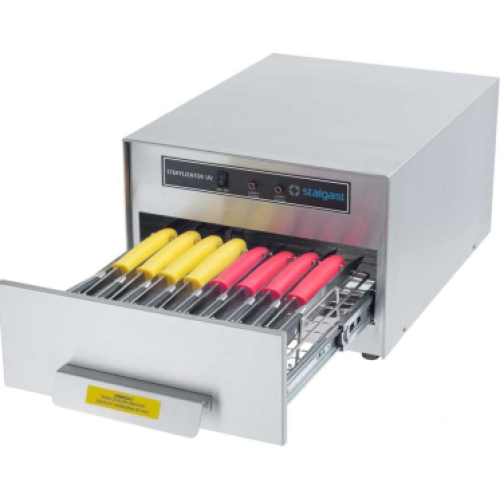 Стерилизатор для яиц Stalgast 690552 используют для дезинфекции яиц и ножей на кухнях заведений общественного питания. Вместимость 30 яиц или 17 ножей с максимальной длиной 32 см (с рукояткой).