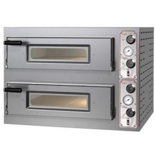 Піч для піци FROSTY BASIC 8 призначена для випічки класичної піци в піцеріях, кафе, ресторанах , фаст фуді. Дана модель має дві камери з незалежною панеллю управління. Под камери розміром 700*700*150 мм дозволяє за один раз випікати вісім піц діаметром 35 см. Под виконаний із вогнетривкого шамотного каменю товщиною 14 мм.