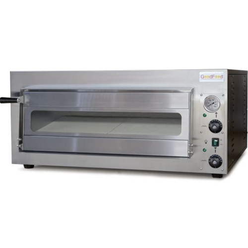 Піч для піци GoodFood PO33 вміщає 4 піци діаметром 35 см. Внутрішній розмір камери 720х720х155 мм. Дно камери виконане із цільного шамотного каменю товщиною 19 мм.