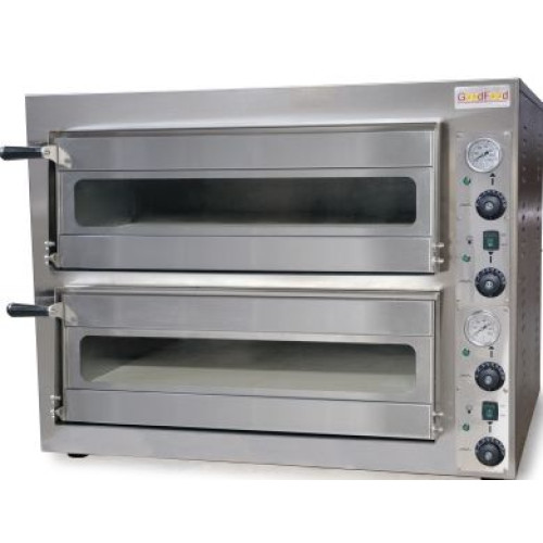 Піч для піци GoodFood PO44 на дві камери. Кожна камера вміщає 4 піци діаметром 35 см. Внутрішній розмір камери 720х720х155 мм. Дно камери виконане із цільного шамотного каменю товщиною 19 мм.