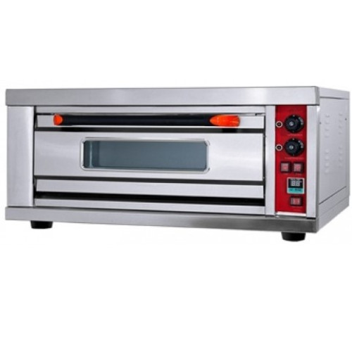 Дана модель має одну камеру розміром 640х460х180 мм та вміщає одне деко розміром 600х400 (в комплект не входить). Управління механічне. Два термостати дозволяють встановлювати необхідну температуру для верхніх та нижніх ТЕНів. Температурний режим від +50 до +300°С. Піч оснащена електронним таймером від 0 до 99 хв.