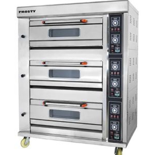 Дана модель має три камери розміром 860х640х220 мм та вміщає шість деко розміром 600х400 (в комплект не входить). Управління механічне. Вбудований електронний термометр. На кожну камеру два термостати, що дозволяють встановлювати необхідну температуру для верхніх та нижніх ТЕНів. Температурний режим від +35 до +400°С. Камера оснащена електронним таймером від 0 до 99 хв.