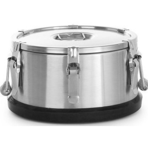 Виготовлений із нержавіючої сталі товщиною 0,6 мм. Кришка з ручкою та товстим силіконовим ущільненням. Кришка закривається на 4 засувки. Дно термоса закріплене чорним гумовим обідком. Для зручного транспортування передбачено дві ергономічні руки. Подвійні стінки, між стінками корпусу спеціальний ізоляцйний матеріал - піна. Вбудований клапан скидання тиску. Можливість штабелювання. Підходить для холодних і горячих страв. Температура їжі тримається на протязі 6-8 годин.